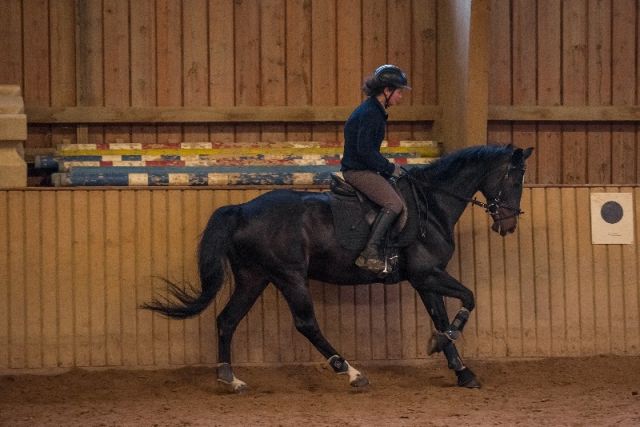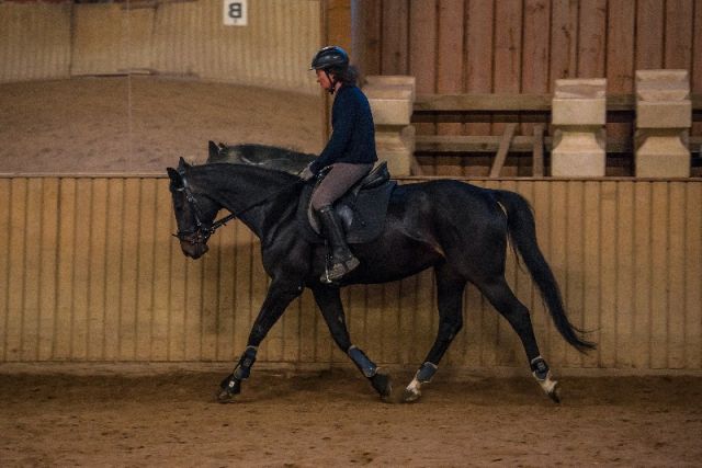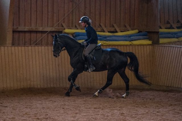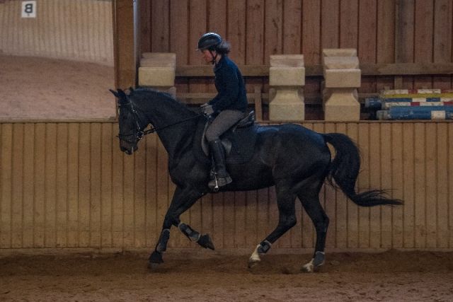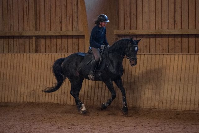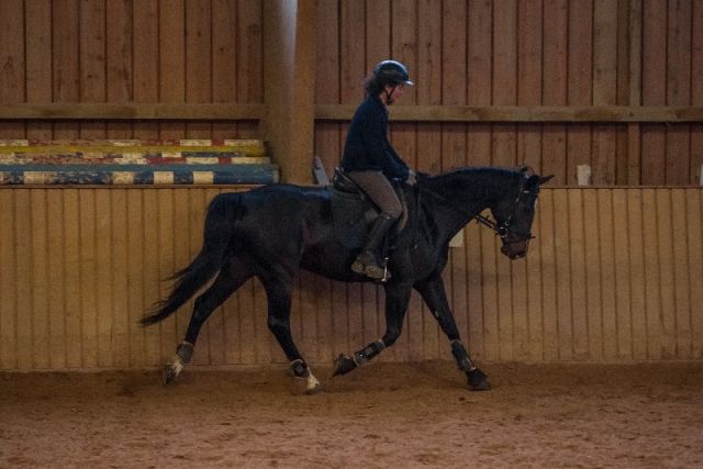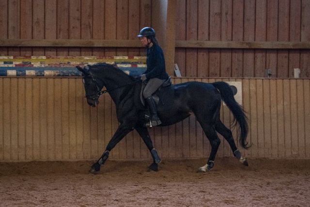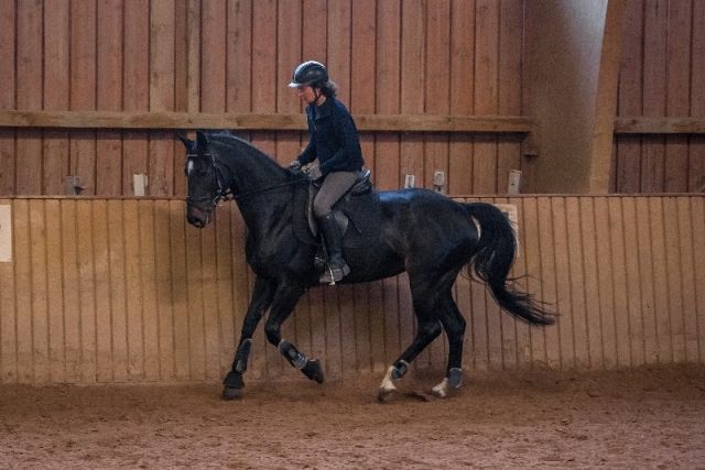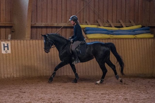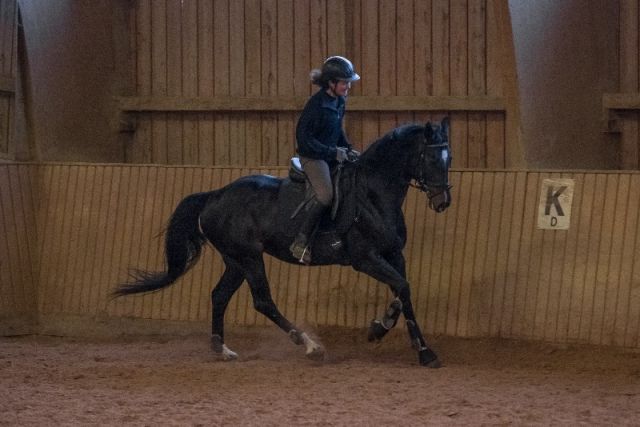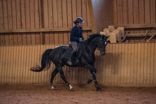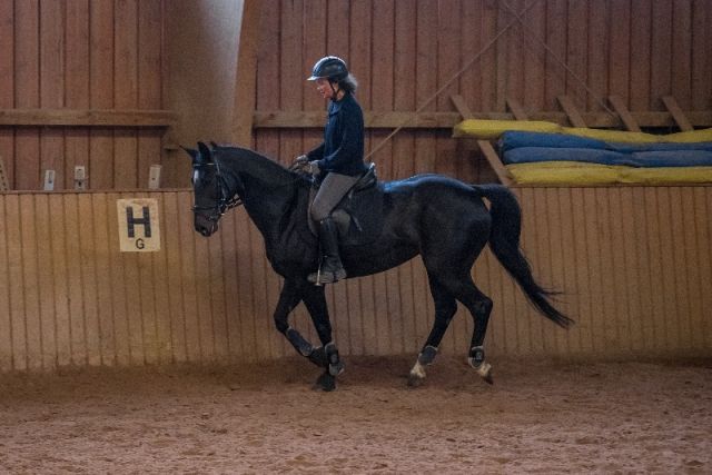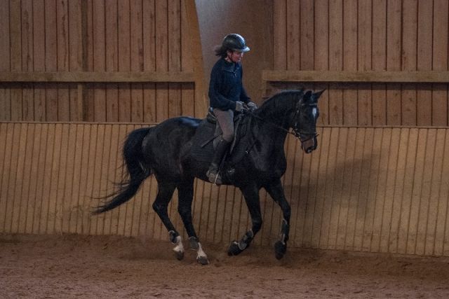 Die Stute entwickelt sich sehr gut, sie ist sehr weich zu sitzen. Aufmerksam und feinfühlig in der Hilfengebung.