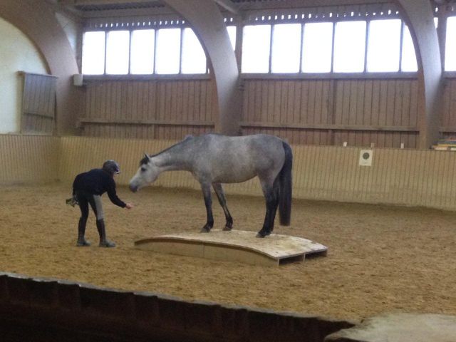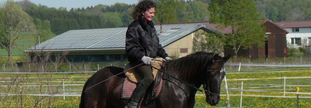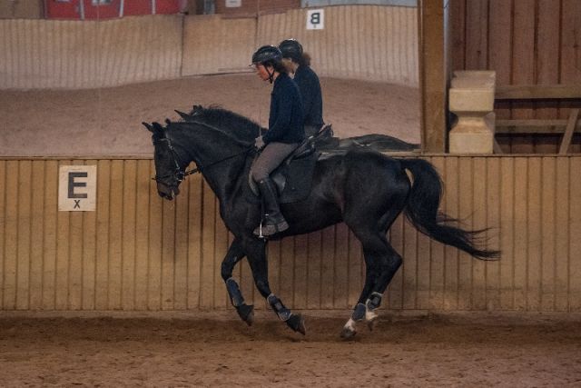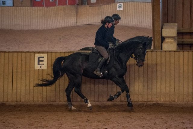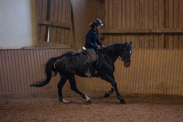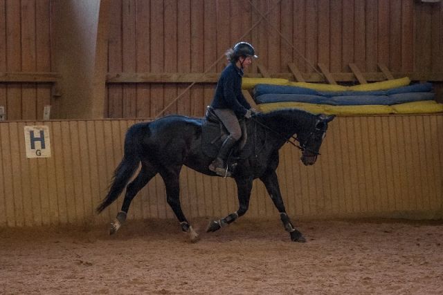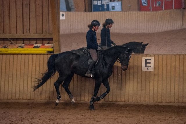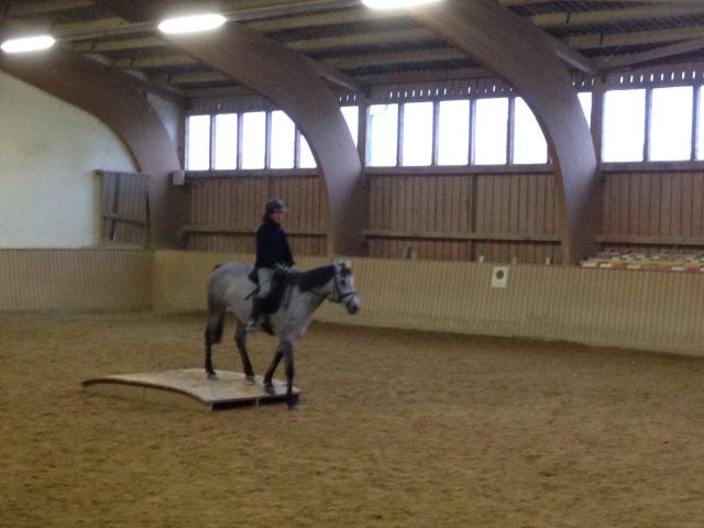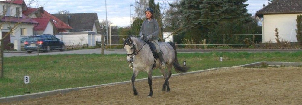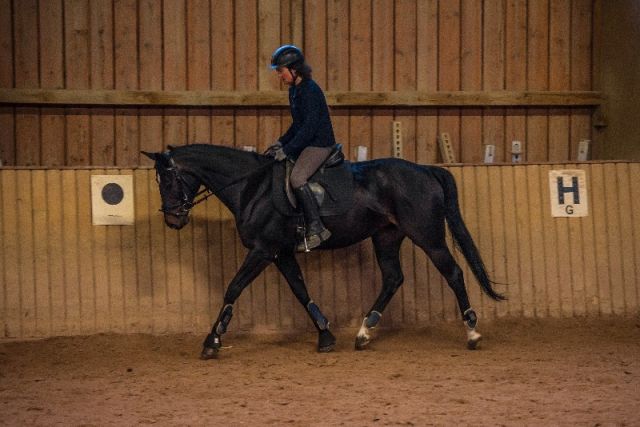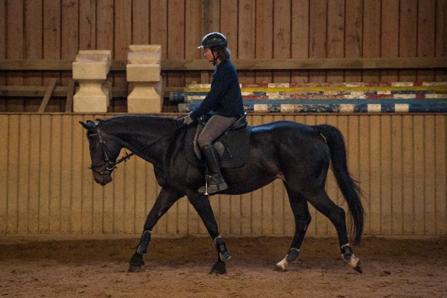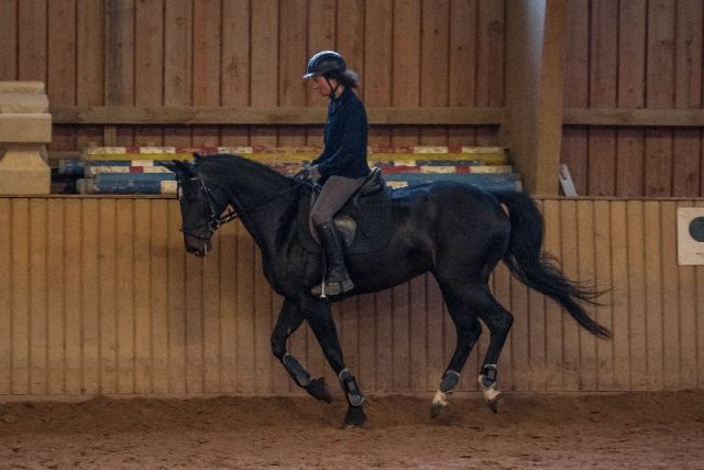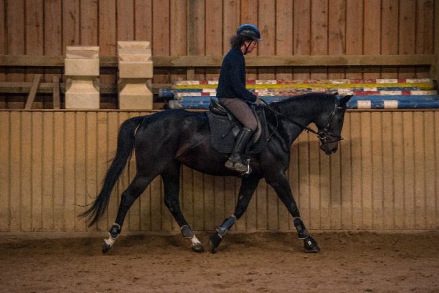 Die Stute entwickelt sich sehr gut, sie ist sehr weich zu sitzen. Aufmerksam und feinfühlig in der Hilfengebung.