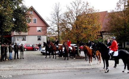 Gerade einmal neun Reiter hatten sich zu der traditionellen Fuchsjagd des Mehrstetter Reit- und Fahrvereins auf dem Marktplatz in Mehrstetten eingefunden. Ihnen blies am Sonntag ein eisiger Wind entgegen.