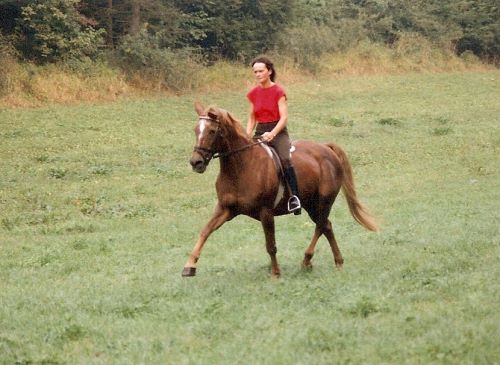 Daß sie hundertzwanzig Jahre auf dem Buckel hat, sieht man ihr kaum an. Nur hier und da schauen ein paar graue Haare aus der Mähne. Aber die hat sie schon lange. Ihre Zähne hat sie noch alle. Vielleicht liegt es an der gesunden Lebensart:streng vegetarische Ernährung und vor allem viel Bewegung. Am Montag wird die Stute Esta der Ödenwaldstettenerin Gabriele Walter dreißig Jahre alt.Ein biblisches Alter für ein Pferd, entsprechen dreißig Pferdejahre doch hundertzwanzig Menschenjahren.