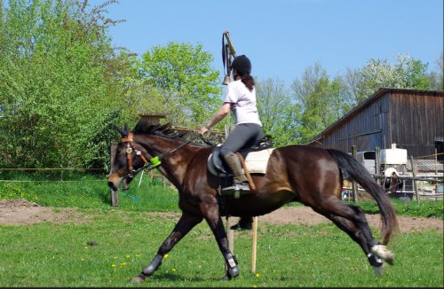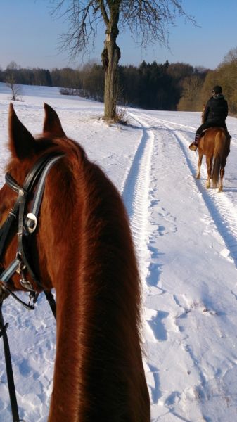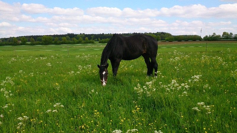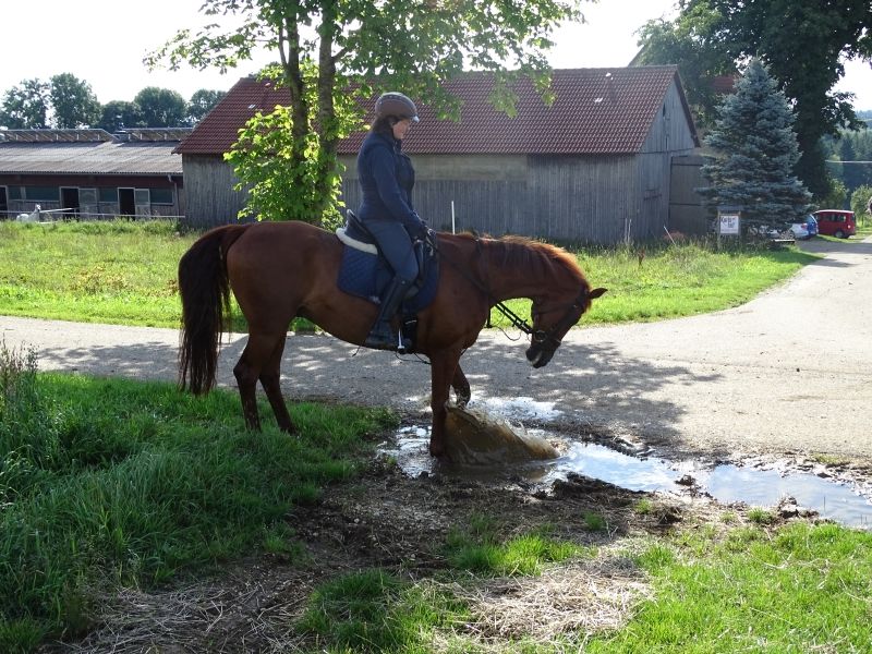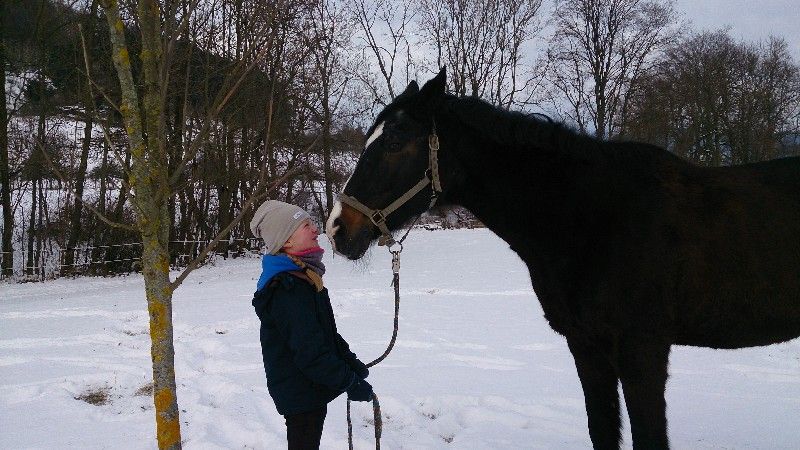 Das ist nun zwei Jahre her. Man kann ihn wieder reiten, er geht auch ins Gelände, jedoch nur zusammen mit anderen. Er blüht sichtbar auf. Es gab einen Rückschlag durch eine Verletzung am Bein aber im Moment sieht es stabil aus.